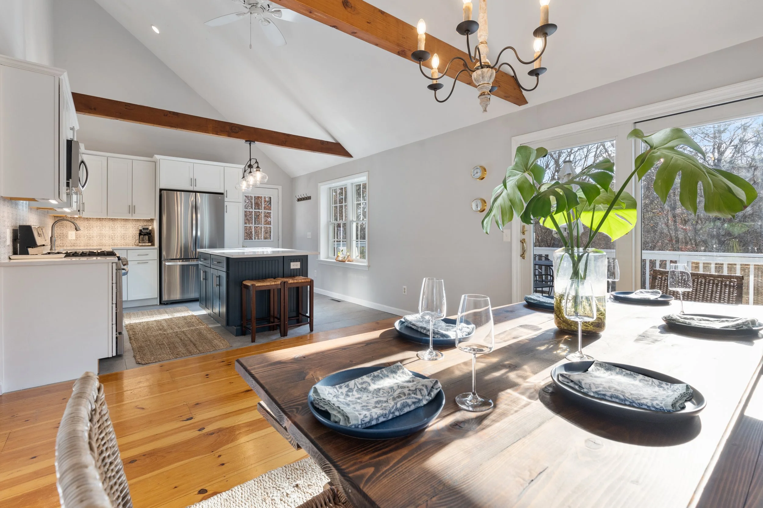As a short-term rental, the home needed to balance aesthetic presence with everyday functionality. Materials were chosen for durability and ease of maintenance, and furnishings were selected for both comfort and resilience. The result is a space that supports the flow of daily living while retaining a strong sense of visual calm.